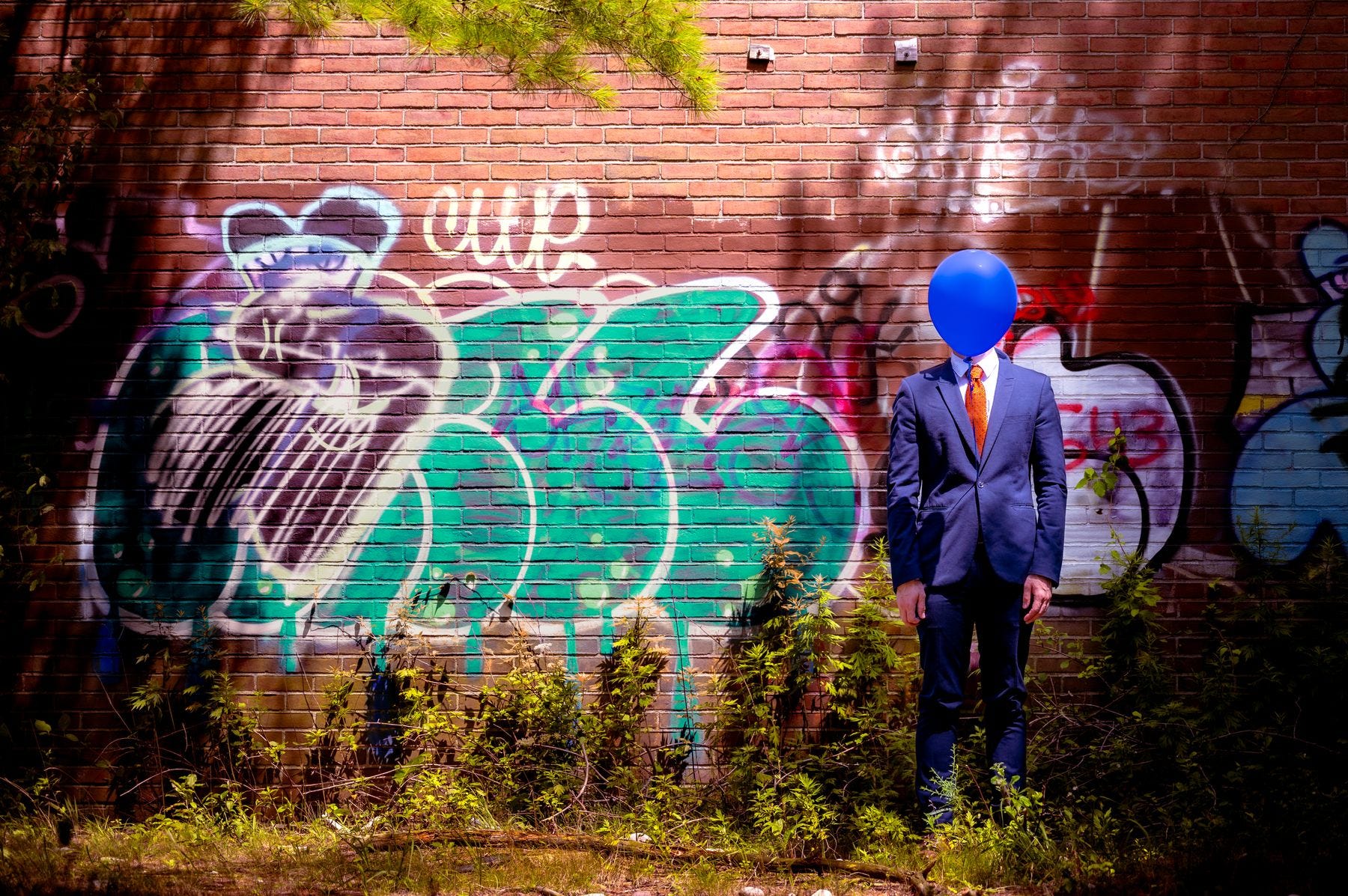 The juxtaposition between balloons and suits is one that will almost always catch my interest. It makes me stop and think, it makes me ask questions. I wanted to do the same with this piece, and force viewers to stop in their tracks and be perplexed.