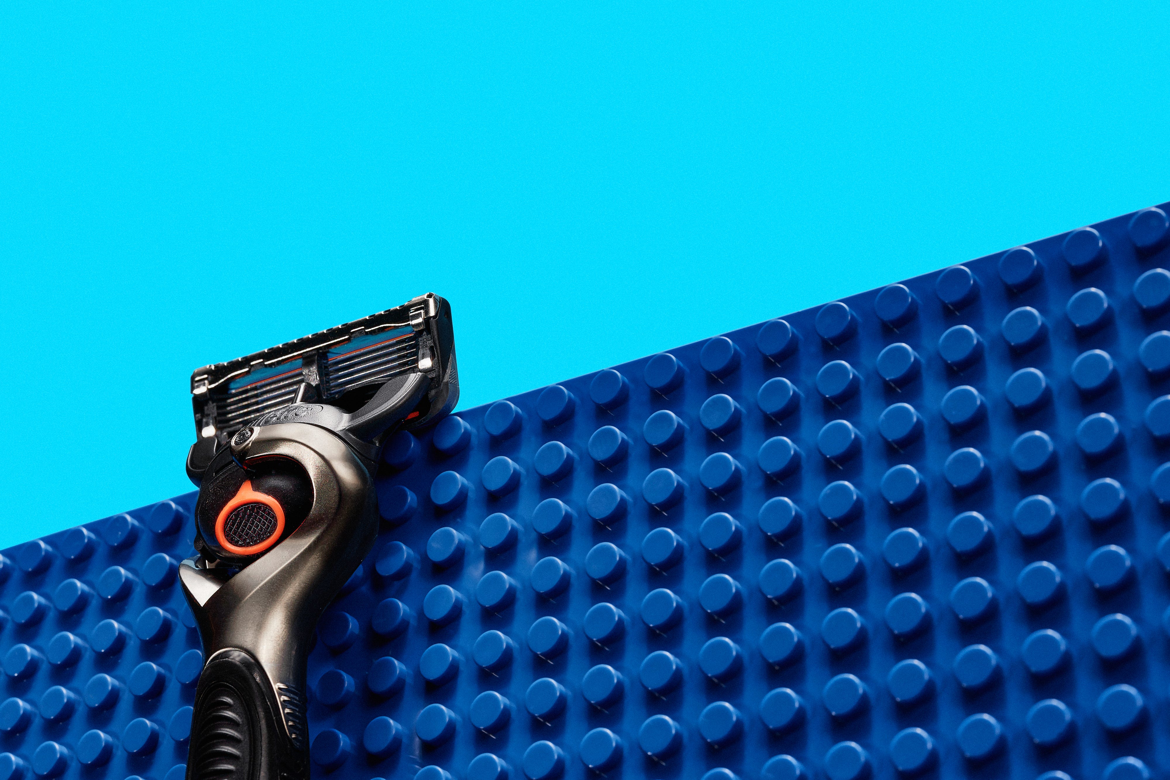 I’ve always been a huge Scott Choucino fan and since being in Carty’s accelerator I’ve realized the need to shift my niche to products. For this assignment, I wanted to play with contrasting textures and the rough Lego and smooth blue paper with the razor became a concept I could develop. So the razor transitions the texture from rough to smooth as it would in shaving.
