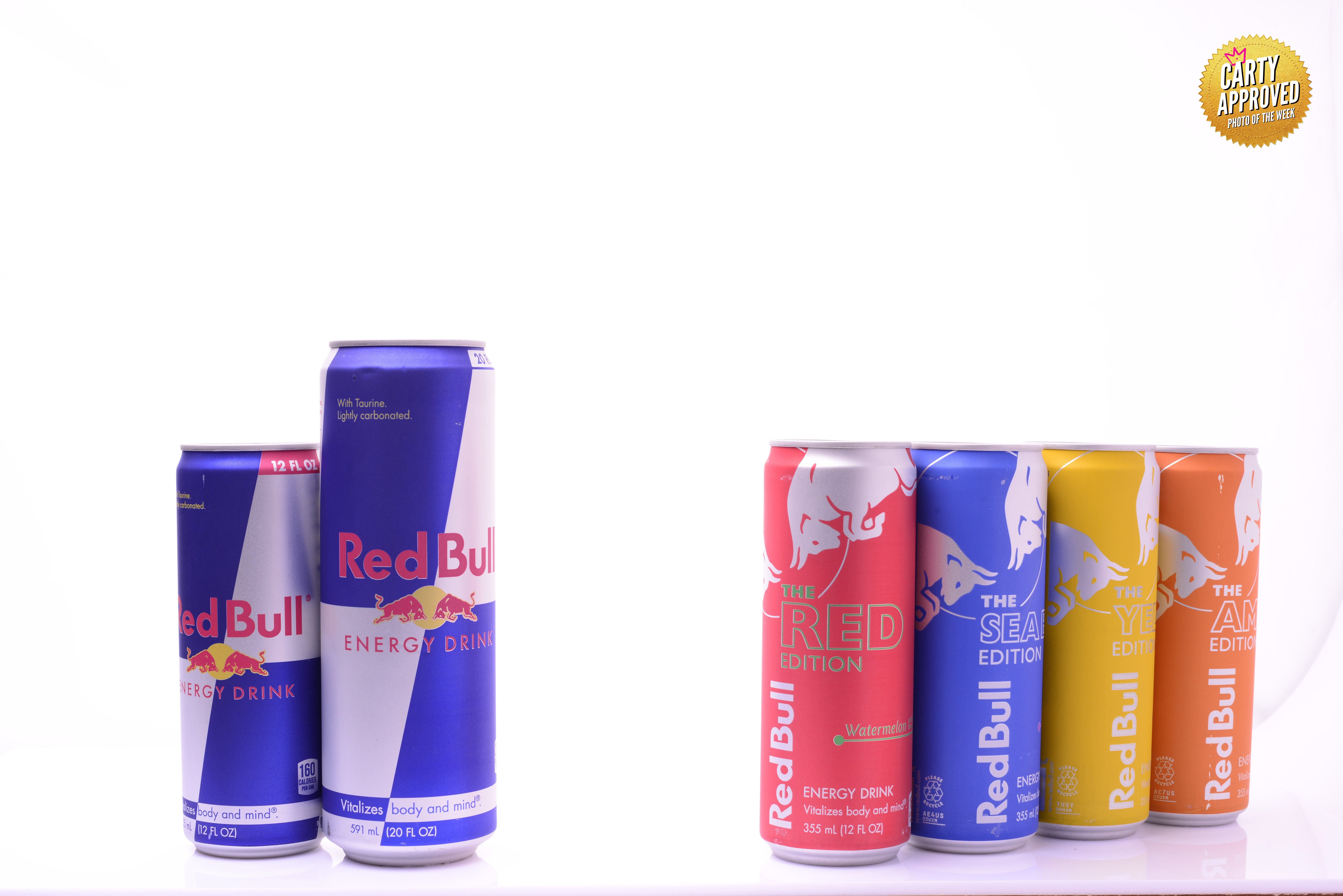 Red Bull uses their “Matador Bulls” prominently on their labels, so my goal was to remove the glare of the metal, while highlighting “The Bulls”, in their own way on both sides.