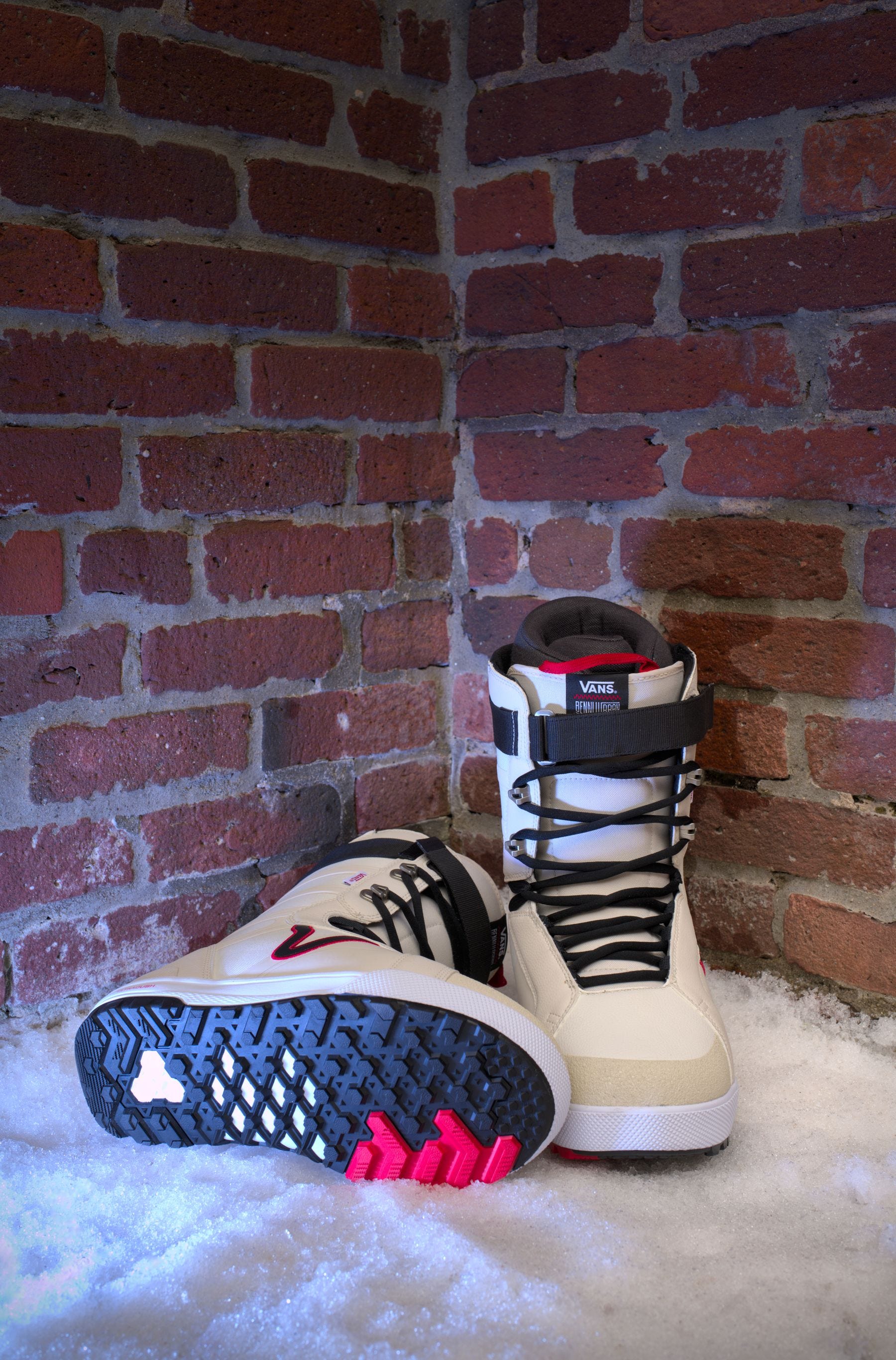As a product shooter, I chose to riff on the manufacturer's slogan "Off the Wall". Being snowboard boots, I had to add in some actual snow as well.