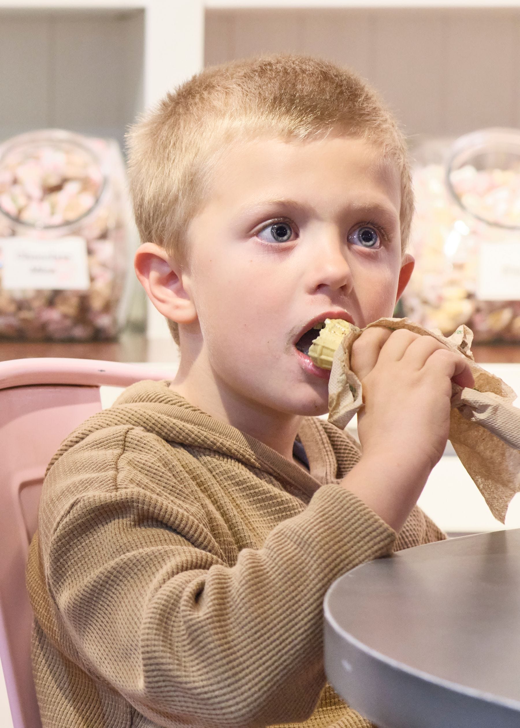 I focused on my subject's favorite snacks, and we walked through different aisles trying to capture that perfect shot.