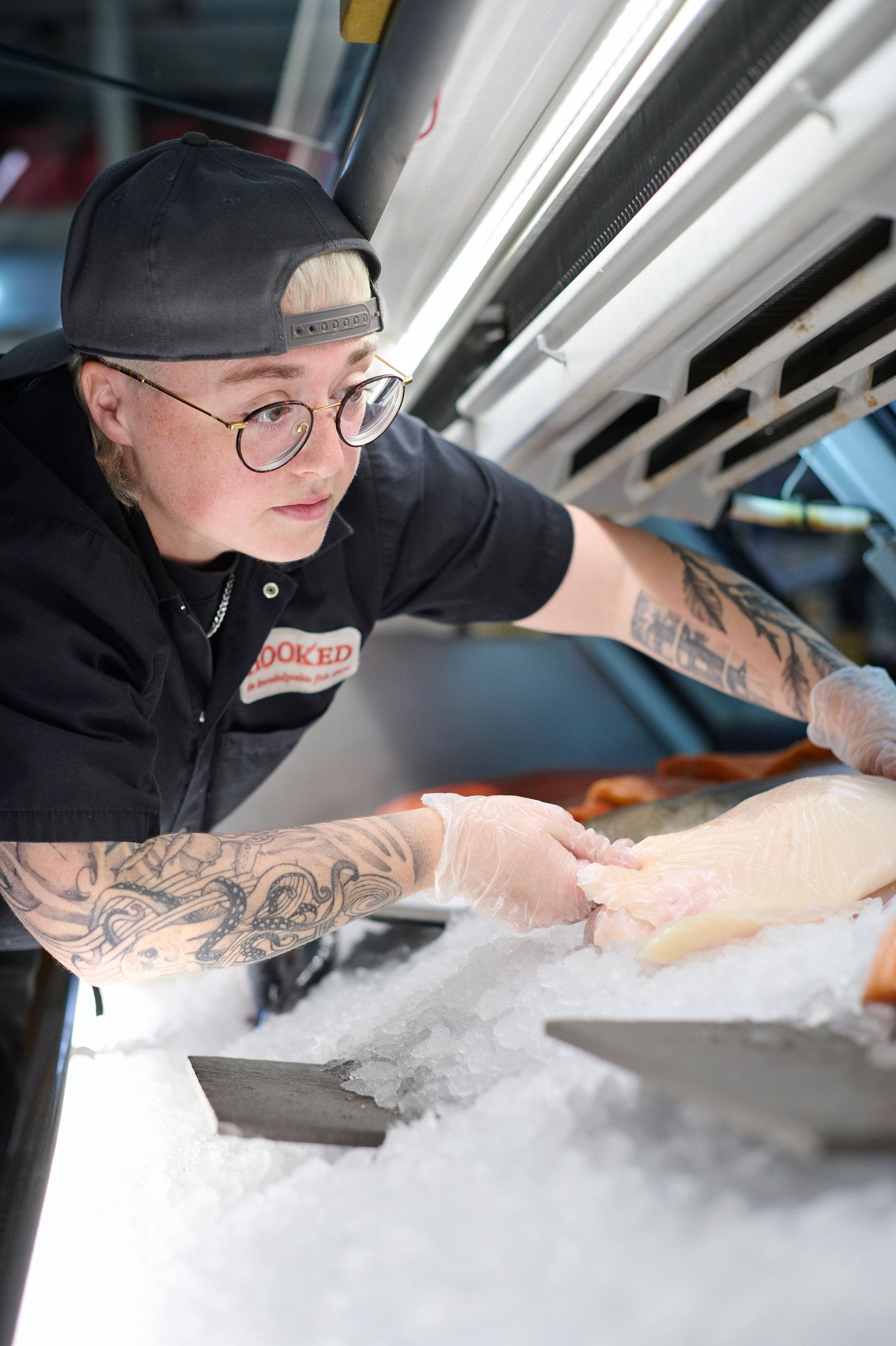 In reality Chris’ mom got a job as a fishmonger (which is really just someone who sells fish) and Chris happened to also apply for a job at Hooked and got the job.