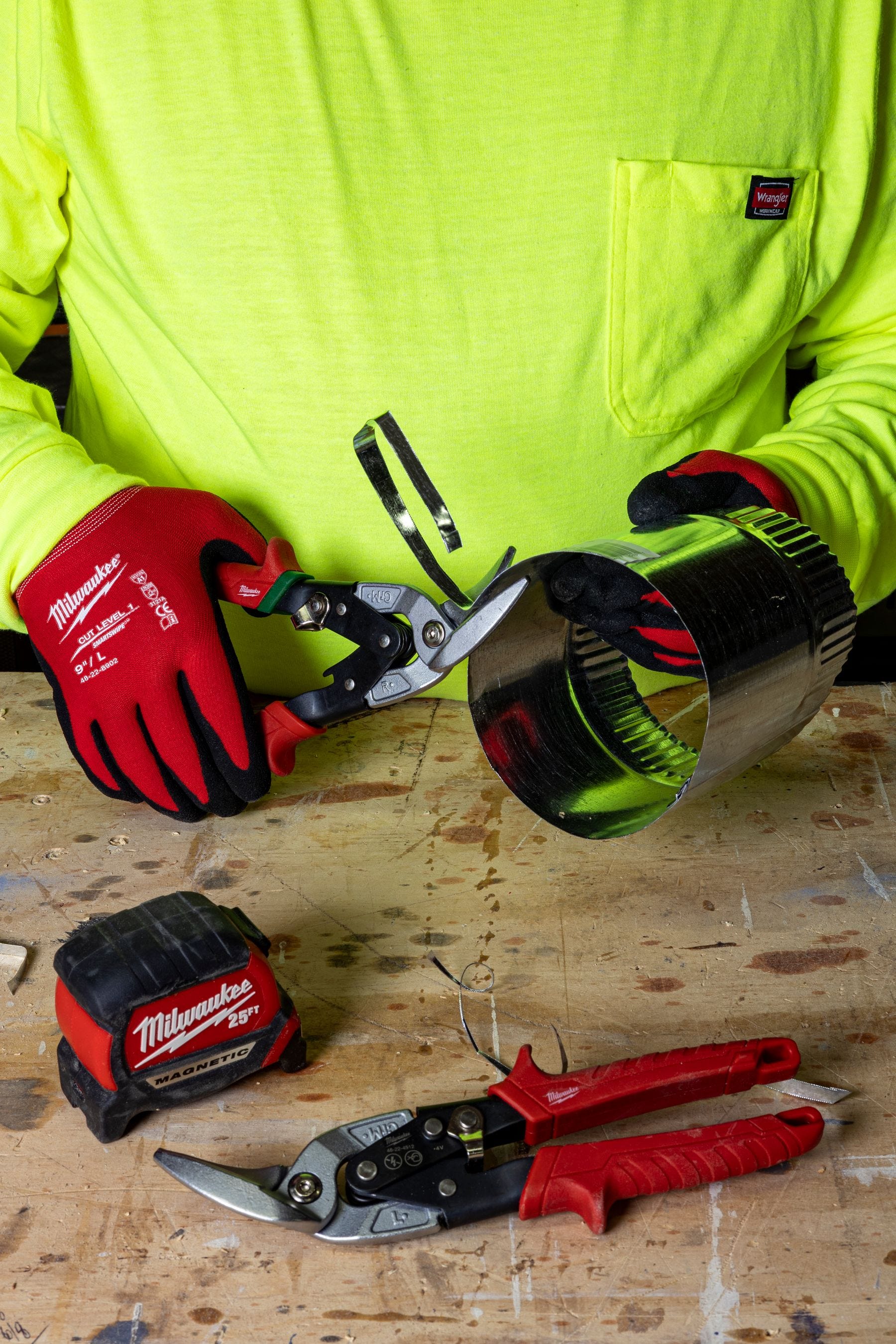 I also wanted the high-viz shirt to be that yellow because of the contrast it gives to the Milwaukee red.