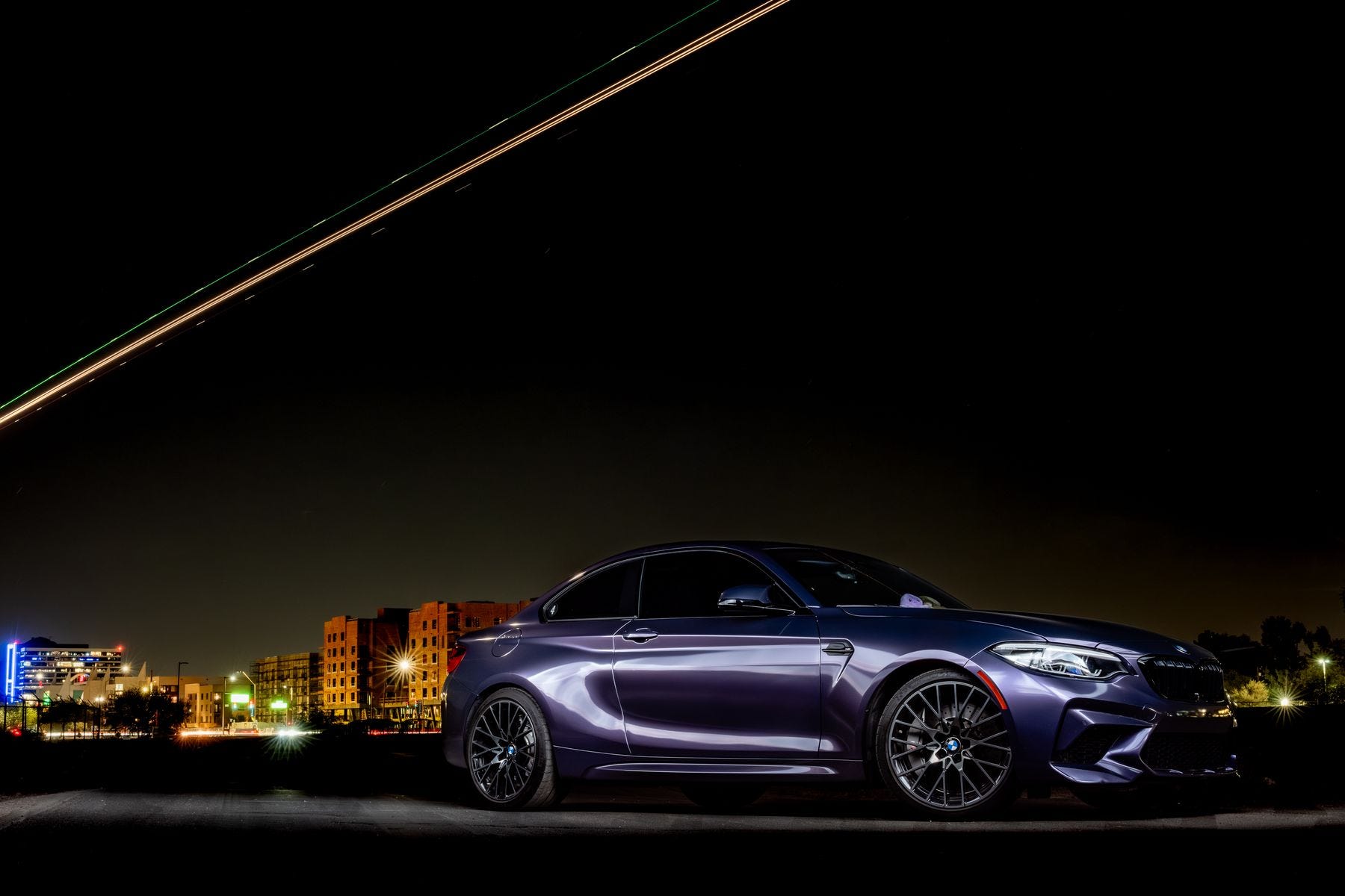 Otherwise, I might try light painting with a drone to create a "halo" effect over the vehicle.