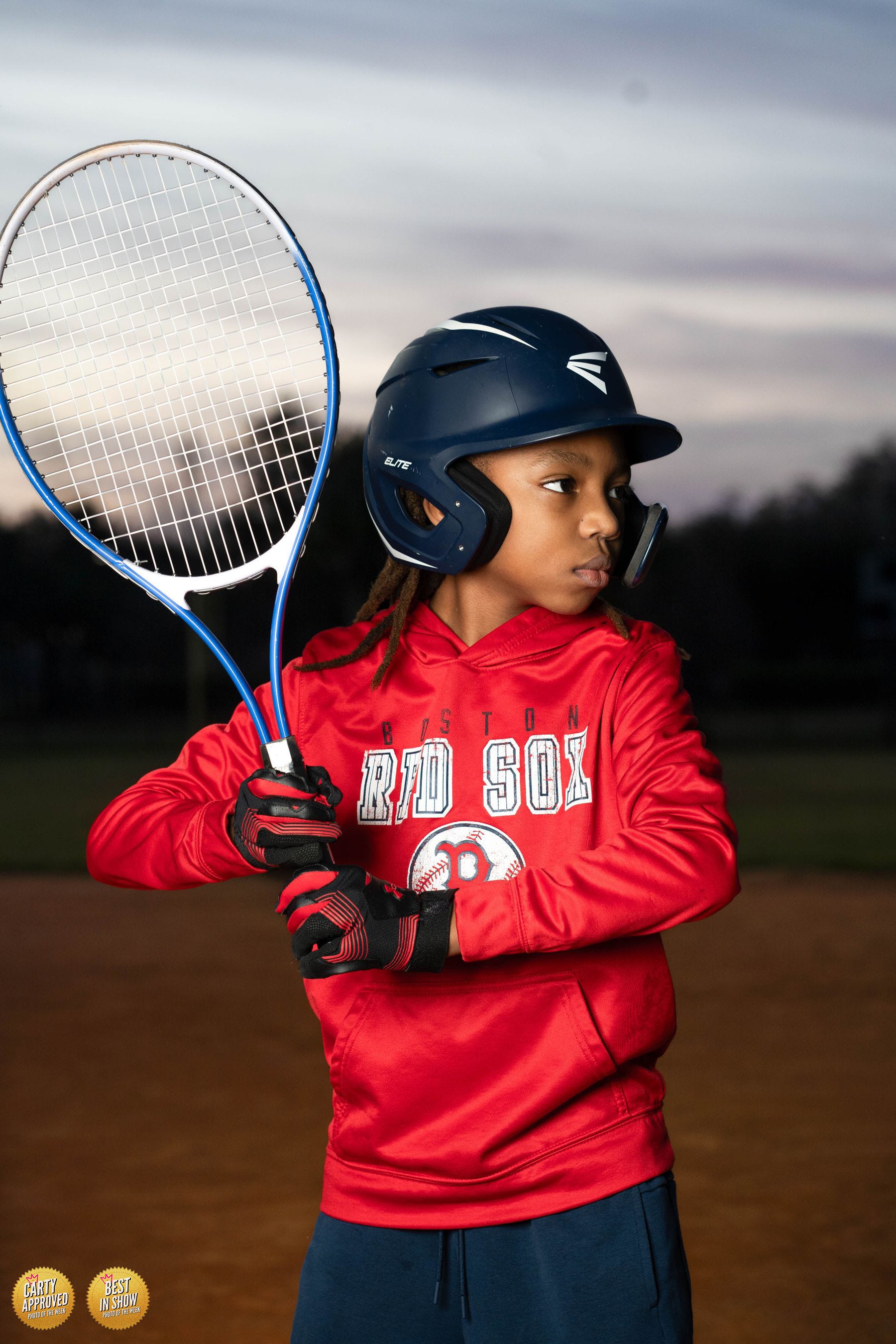I really like that, but I sill wanted to try the last idea. I was going to place a tennis ball on a tee and have him line up with the tennis racket.