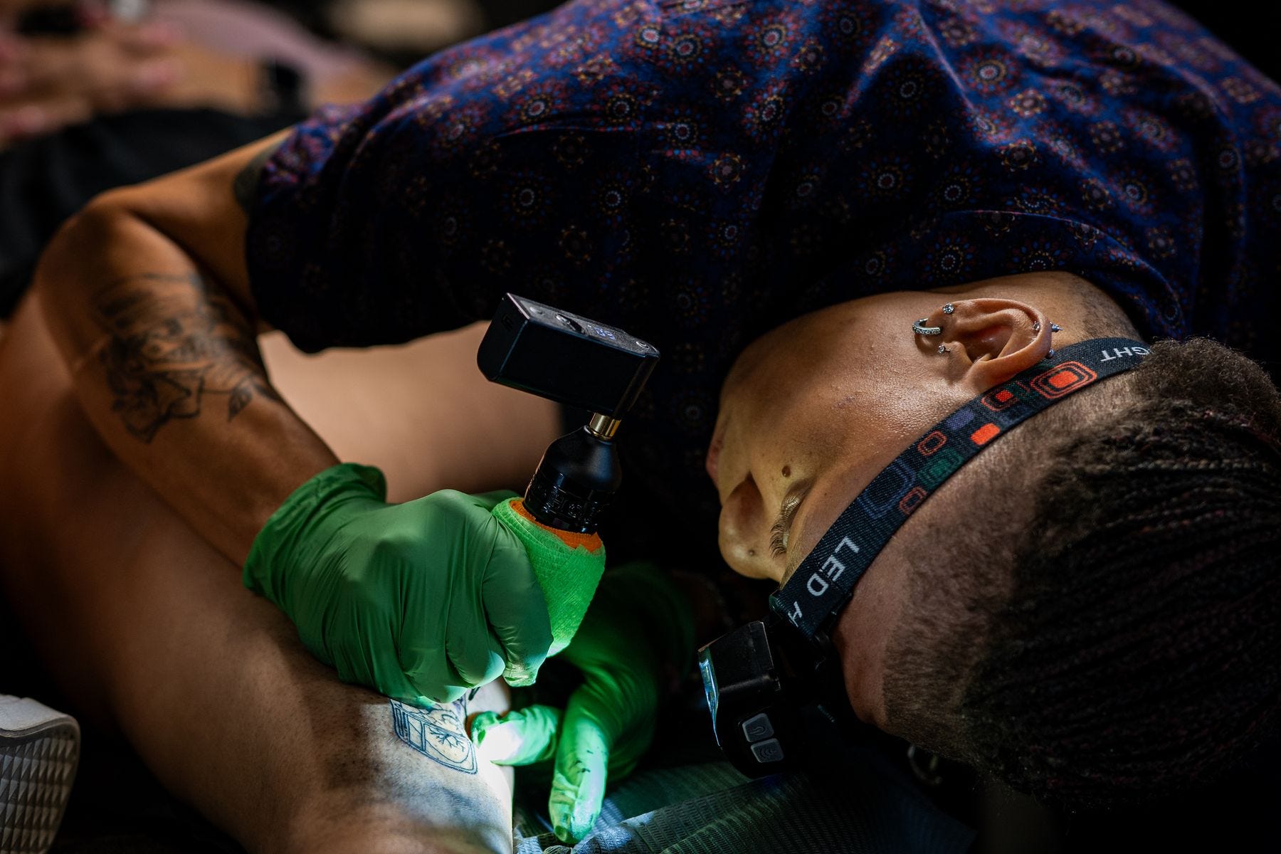 I knew I wanted to use the light behind the artist as a hair light and the light from the head lamp as the primary light source, but I also couldn’t interfere with the process of the tattoo.