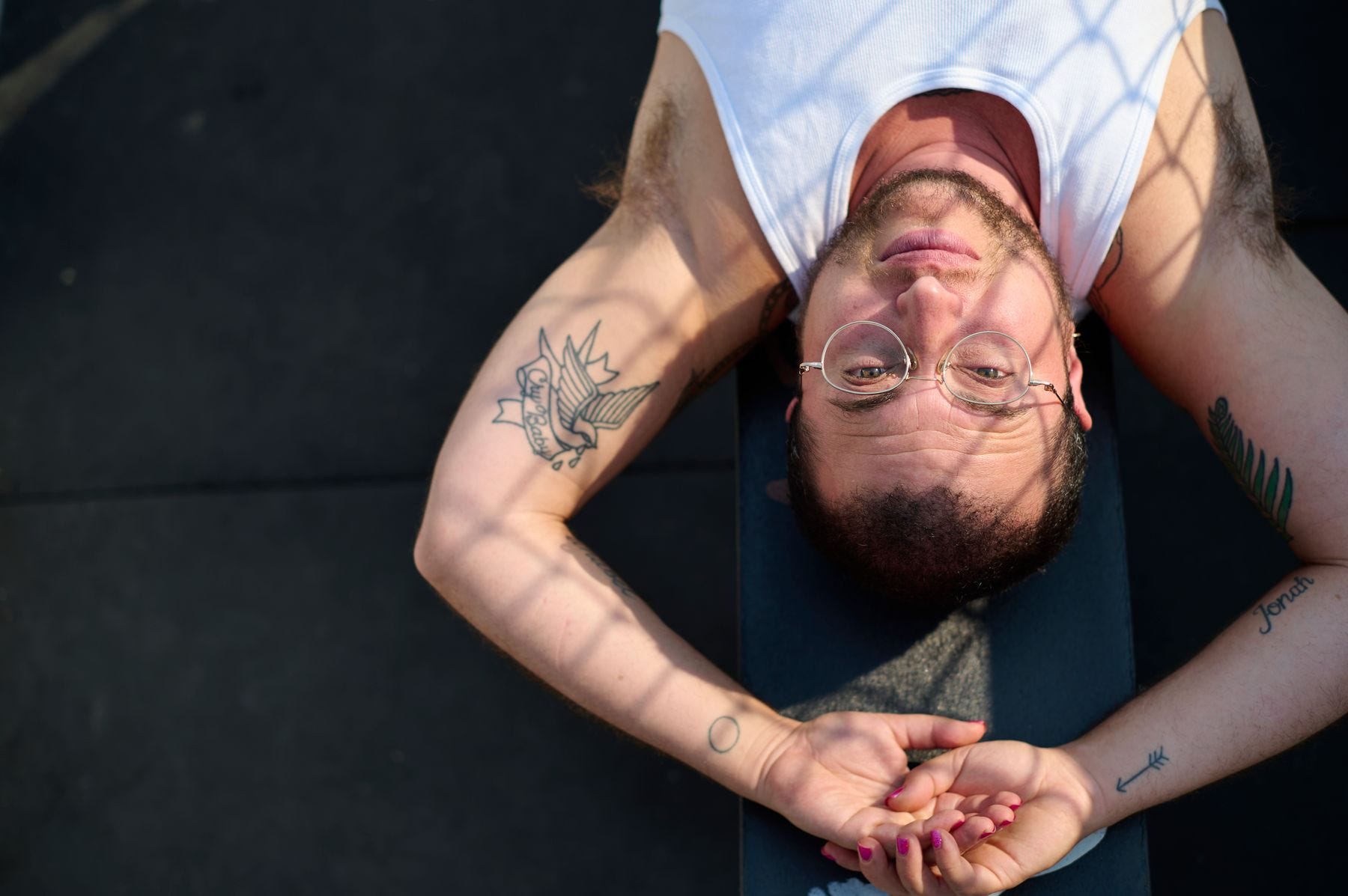 For this photo I took one of my subjects for Finding Handsome to a park to photograph them on the basketball court and hockey rink.